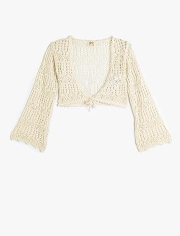 Crop Ajurlu Hırka V Yaka Uzun Kollu Sepete Ekle
