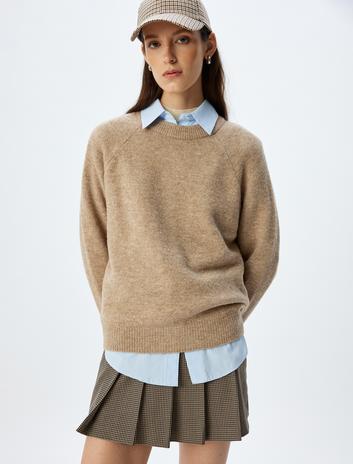 Basic Triko Kazak Bisiklet Yaka Düşük Omuzlu Sepete Ekle