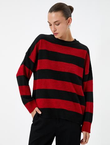 Basic Triko Kazak Bisiklet Yaka Düşük Omuzlu