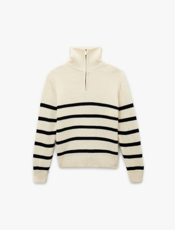 Yarım Fermuarlı Çizgili Kışlık Triko Kazak