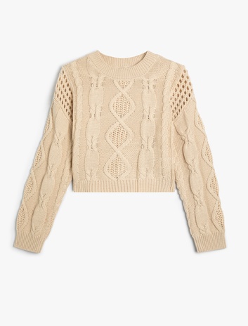 Crop Kazak Ajurlu Yuvarlak Yaka Uzun Kollu Sepete Ekle