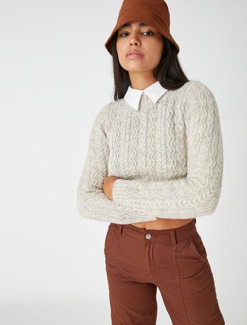 Crop Triko Kazak Örgü Desenli Sepete Ekle