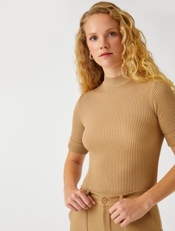 Bisiklet Yaka Triko Kazak Crop