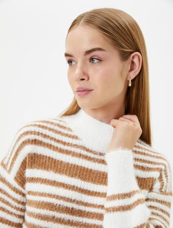 Boğazlı Örgü Kazak Yumuşak Dokulu Uzun Kollu