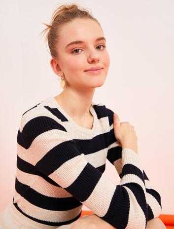 Çizgili Bisiklet Yaka Triko Kazak Sepete Ekle