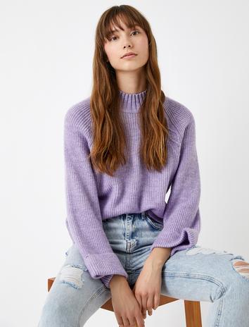 Yarım Balıkçı Yaka Kolları Geniş Triko Kazak Sepete Ekle