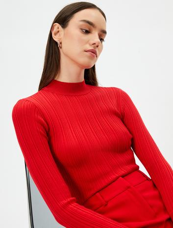 Triko Boğazlı Kazak Uzun Kollu Fitilli Kaşmir Dokulu