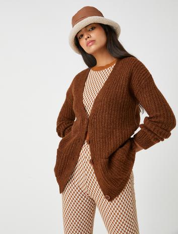 Örgü Hırka Düğmeli Uzun Kollu Sepete Ekle