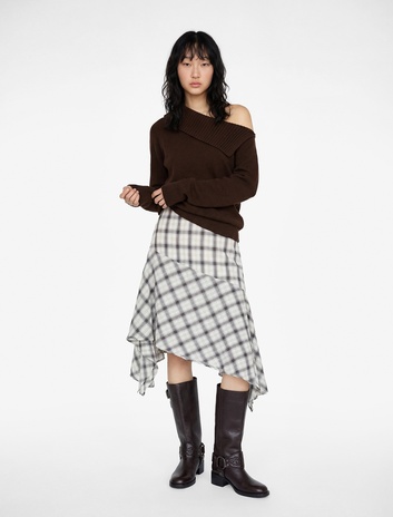 Kat Detaylı Fitilli Uzun Kollu Triko Omzu Açık Kazak Sepete Ekle