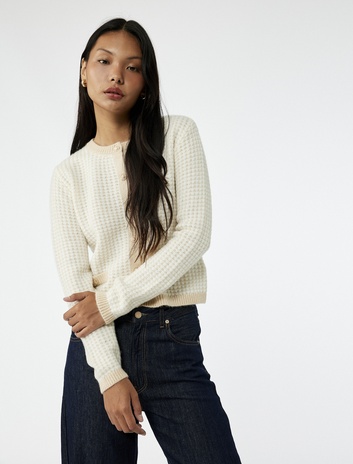 Düğmeli Cep Detaylı Minimal Desenli Uzun Kollu Bisiklet Yaka Triko Hırka Sepete Ekle