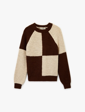 Uzun Kollu Bisiklet Yaka Renk Bloklu Triko Kazak