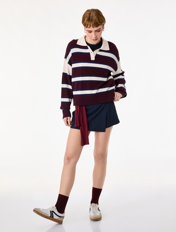 Düğmeli Çizgili Rahat Kalıp Polo Yaka Kazak