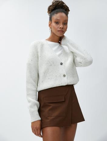 Simli Örgü Hırka V Yaka Düğmeli