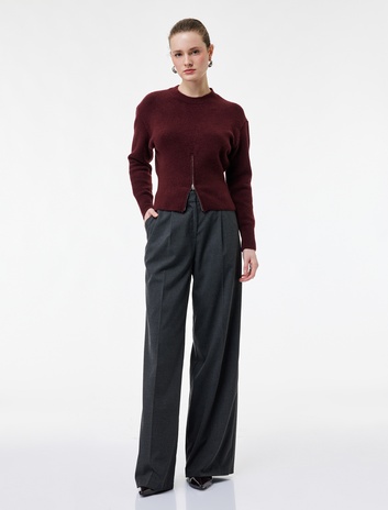 Uzun Kollu Bisiklet Yaka Fermuar Detaylı Triko Kazak