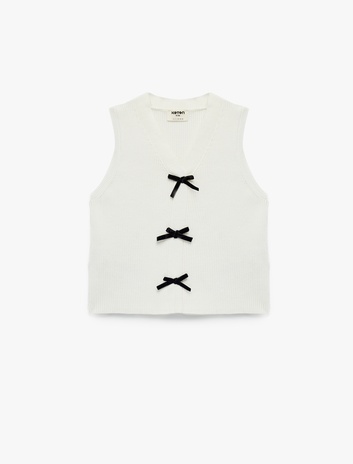 Kız Çocuk Örgü Kazak Kolsuz Yanları Bağlamalı Bisiklet Yaka