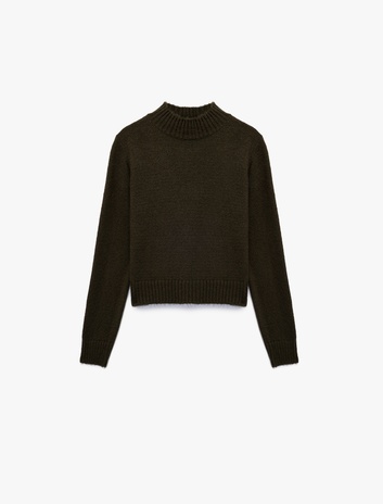 Uzun Kollu Dik Yaka Triko Kazak