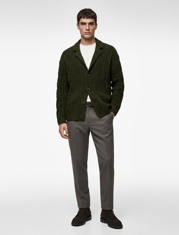 Bisiklet Yaka Düğmeli Saç Örgü Dokulu Triko Hırka