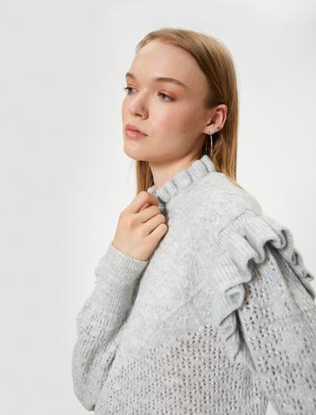 Triko Kazak Dokulu Fırfır Detaylı Dik Yaka Sepete Ekle
