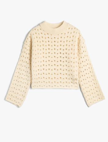 Kız Çocuk Örgü Kazak Yarım Balıkçı Yaka Uzun Kollu