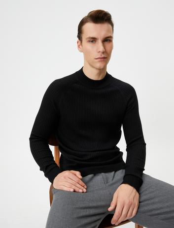 Slim Fit Kazak Triko Yarım Balıkçı Yaka Reglan Kollu Dokulu Sepete Ekle