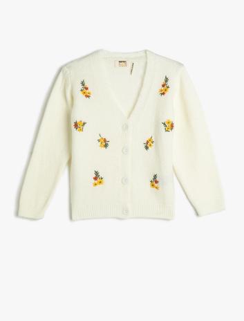 Örgü Hırka Çiçekli Düğmeli Uzun Kollu Düğmeli Sepete Ekle