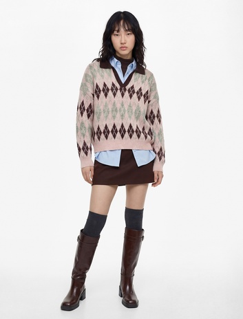 Kalp Desenli V Yaka Kolsuz Triko Süveter Sepete Ekle