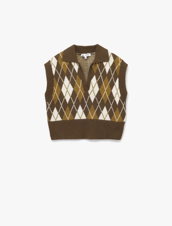 Kolsuz Baklava Desenli Jakarlı Polo Yaka Triko Süveter