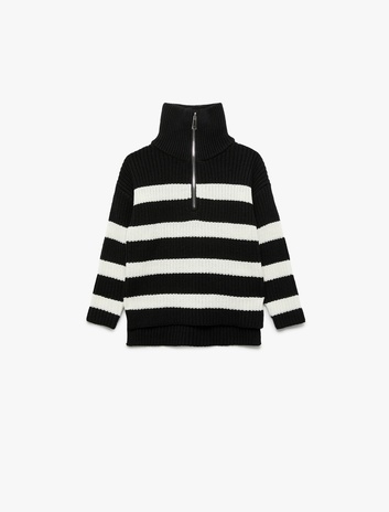 Yarım Fermuarlı Balıkçı Yaka Uzun Kollu Çizgili Triko Kazak Sepete Ekle