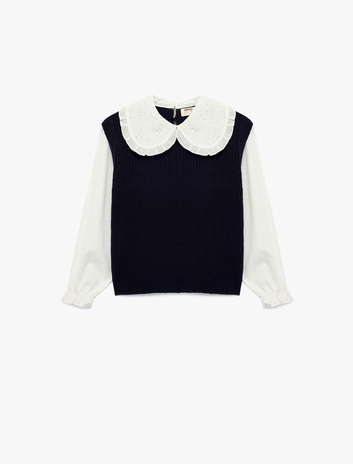 Uzun Kollu Bebe Yaka Brodeli Triko Kazak Sepete Ekle