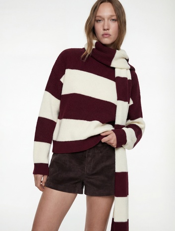 Koton X Sibil Çetinkaya - Uzun Kollu Yuvarlak Yaka Aksesuarlı Pencere Detaylı Triko Kazak Sepete Ekle