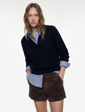 Saç Örgü Dokulu Uzun Kollu Triko Polo Yaka Kazak Sepete Ekle
