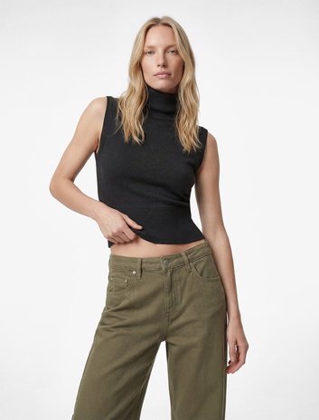 Balıkçı Yaka Kolsuz Triko Bluz