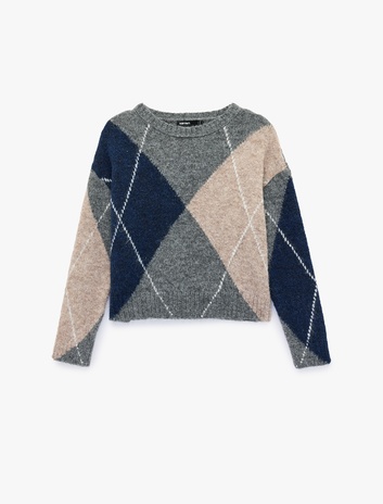 Uzun Kollu Bisiklet Yaka Baklava Desenli Kazak Sepete Ekle