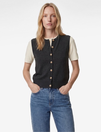 Gold Düğmeli Bisiklet Yaka Triko Yelek