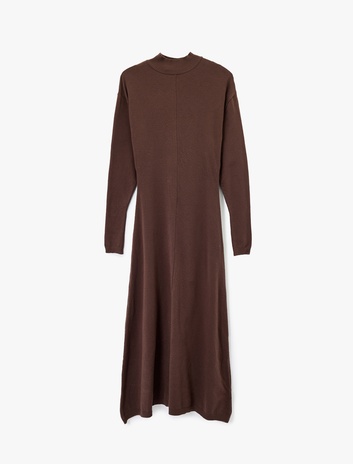 Uzun Kollu Hafif Dik Yaka Uzun Triko Elbise