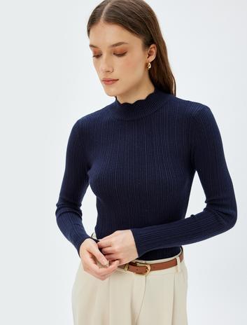 Basic Triko Kazak Hafif Dik Yaka Fitilli Sepete Ekle