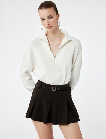 Yarım Fermuarlı Dik Yaka Uzun Kollu Triko Kazak