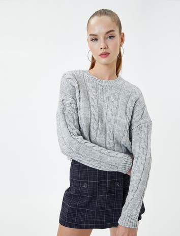 Crop Saç Örgü Kazak Uzun Kollu Bisiklet Yaka Sepete Ekle
