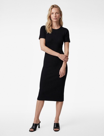Kısa Kollu Yuvarlak Yaka Midi Boy İnce Triko Kalem Elbise Sepete Ekle