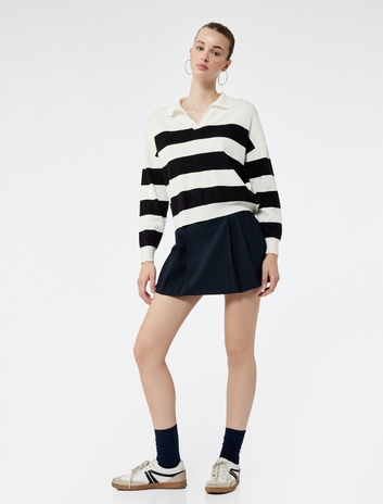 Uzun Kollu Polo Yaka Çizgili Triko Kazak