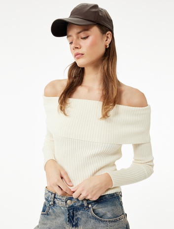 Uzun Kollu Slim Fit Omzu Açık Fitilli Triko Kazak Sepete Ekle
