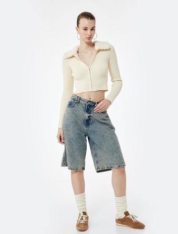 Uzun Kollu Bisiklet Yaka Triko Crop Kazak
