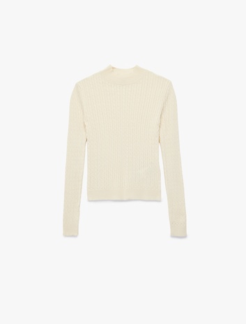 Regular Fit Uzun Kollu Hafif Dik Yaka Saç Örgü Kazak Sepete Ekle