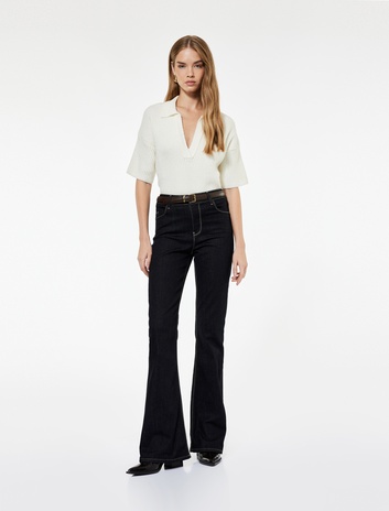 Uzun Kollu Baklava Desenli Polo Yaka Triko Oversize Kazak