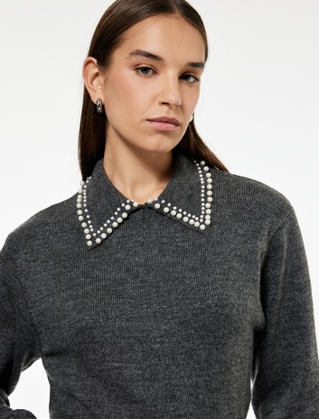 İnci Detaylı Bebe Yaka Uzun Kollu Triko Kazak Sepete Ekle