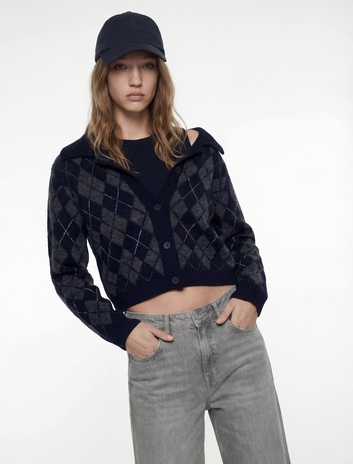 Uzun Kollu Düğmeli Polo Yaka Baklava Desenli Hırka