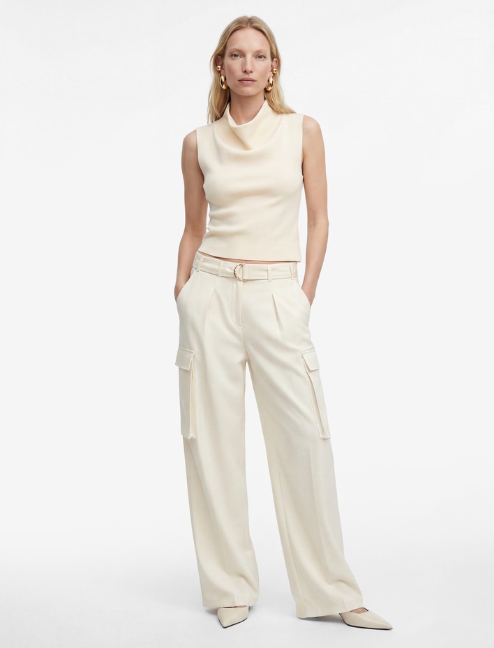Koton X Melis Ağazat - Asimetrik Yaka Kolsuz Metal Aksesuarlı Bluz