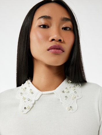 Uzun Kollu Bebe Yaka Taşlı Triko Kazak