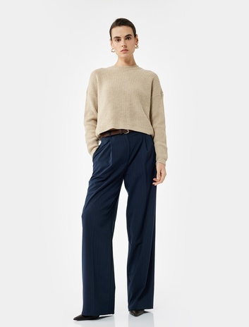 Beli Lastikli Rahat Kalıp Uzun Geniş Paça Triko Pantolon