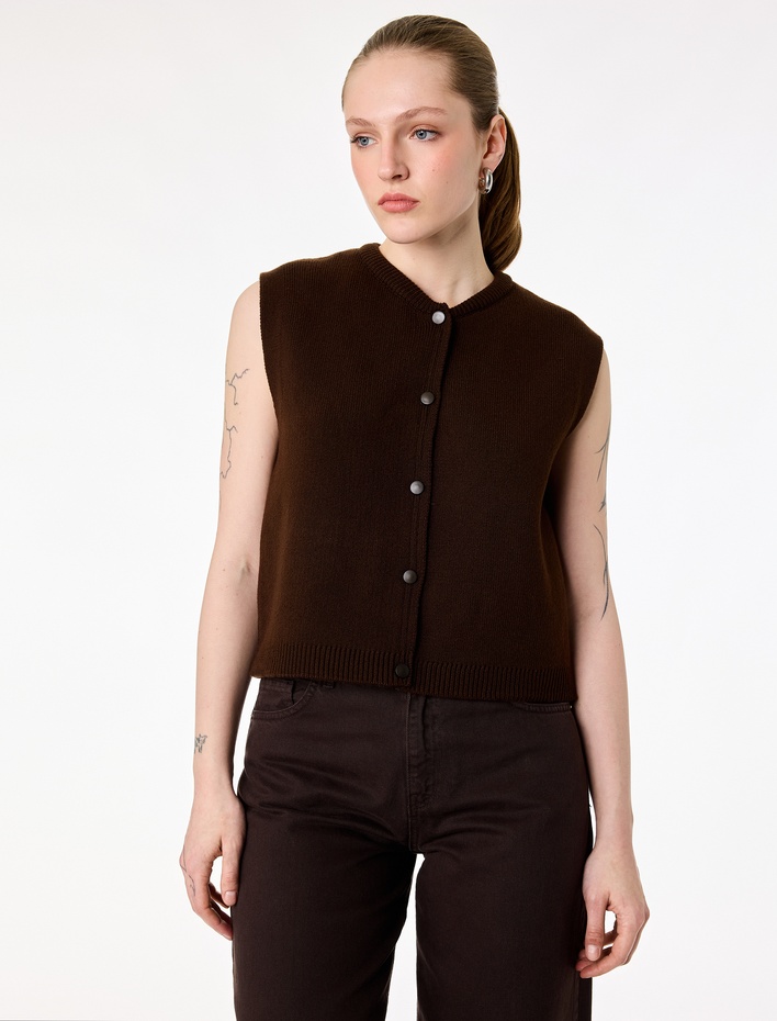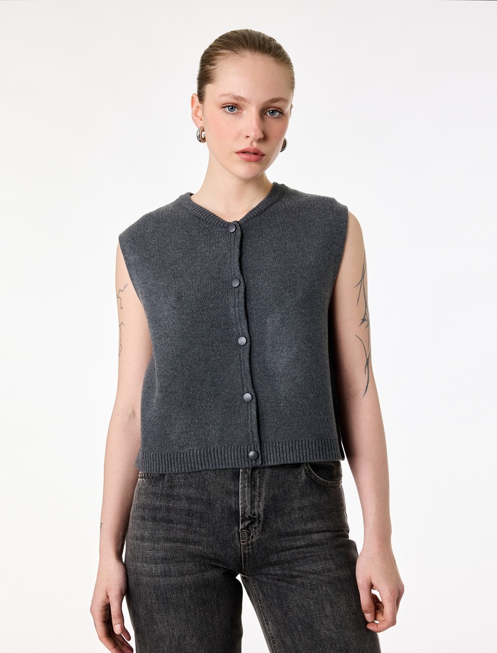 Düğmeli Kolej Yaka Triko Yelek